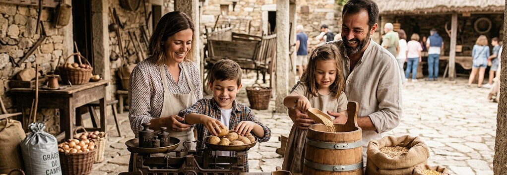 Nesta atividade interativa, as famílias descobrem como se pesavam e mediam os alimentos no passado.