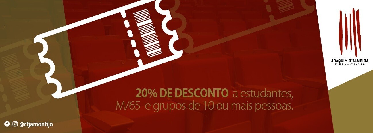 Os descontos para grupos estão apenas disponíveis na bilheteira do Cinema-Teatro Joaquim d'Almeida Montijo (não disponíveis via Ticketline).