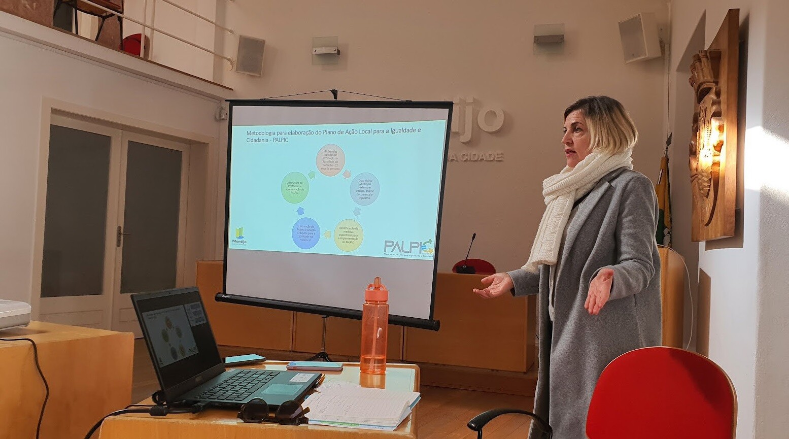 Expusemos a importância da proposta do Plano de Ação Local Para a Igualdade e Cidadania, (PALPIC)e de como este se encontra em linha de atuação com a política da Estratégia Nacional para a Igualdade e a Não-Discriminação (ENIND), que reúne um conjunto de áreas de atuação que visam intervir na comunidade local e contribuir para: “eliminação dos estereótipos de género que estão na origem das discriminações em razão do sexo diretas e indiretas que impedem a igualdade substantiva entre mulheres e homens, reforçando e perpetuando modelos de discriminação históricos e estruturais” tal como inscrito na Resolução do Conselho de Ministros n.º 61/2018, de 21 de maio.