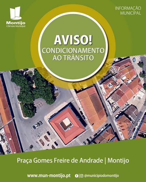 Informa-se que devido à realização do evento “Jovens coreógrafos" inserido no Dia Internacional de Monumentos e Sítios, haverá condicionamento de trânsito na Cidade de Montijo, nos dias 17, 18 e 19 de abril de 2026.
