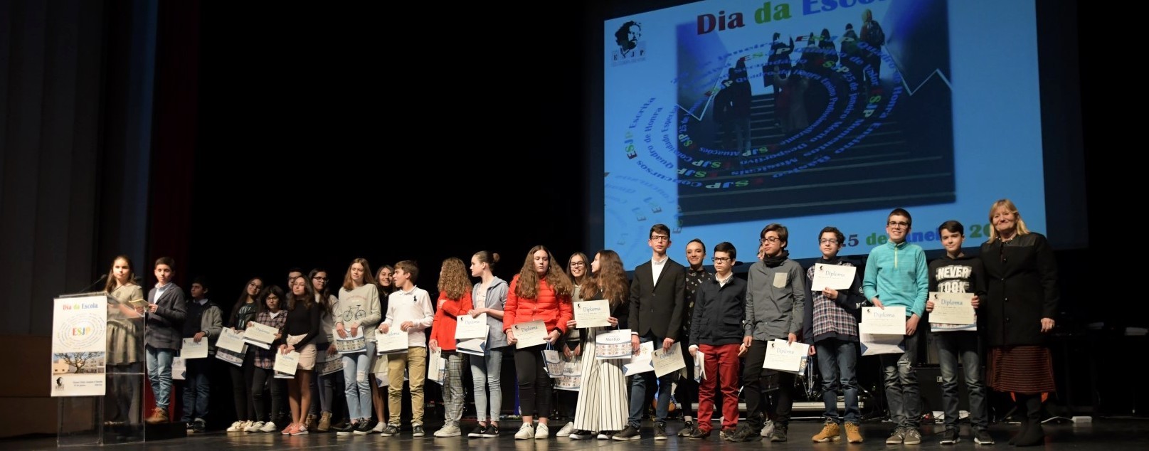 Na sessão comemorativa foram distinguidos os alunos do quadro de honra e valor, bem como os estudantes que se destacaram pela participação em outros projetos e atividades, como o desporto ou a robótica.