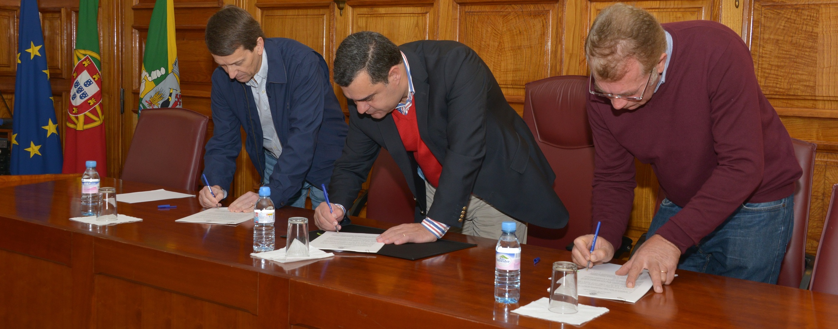 O Salão Nobre dos Paços do Concelho recebeu, no dia 20 de novembro, a assinatura do contrato de urbanização entre a Imoretalho, a Construções Filipe & Marques e a Câmara Municipal do Montijo, assim como do protocolo entre estas duas últimas entidades, que permitirá a construção de dois troços rodoviários na zona do Corte do Esteval, no Montijo.