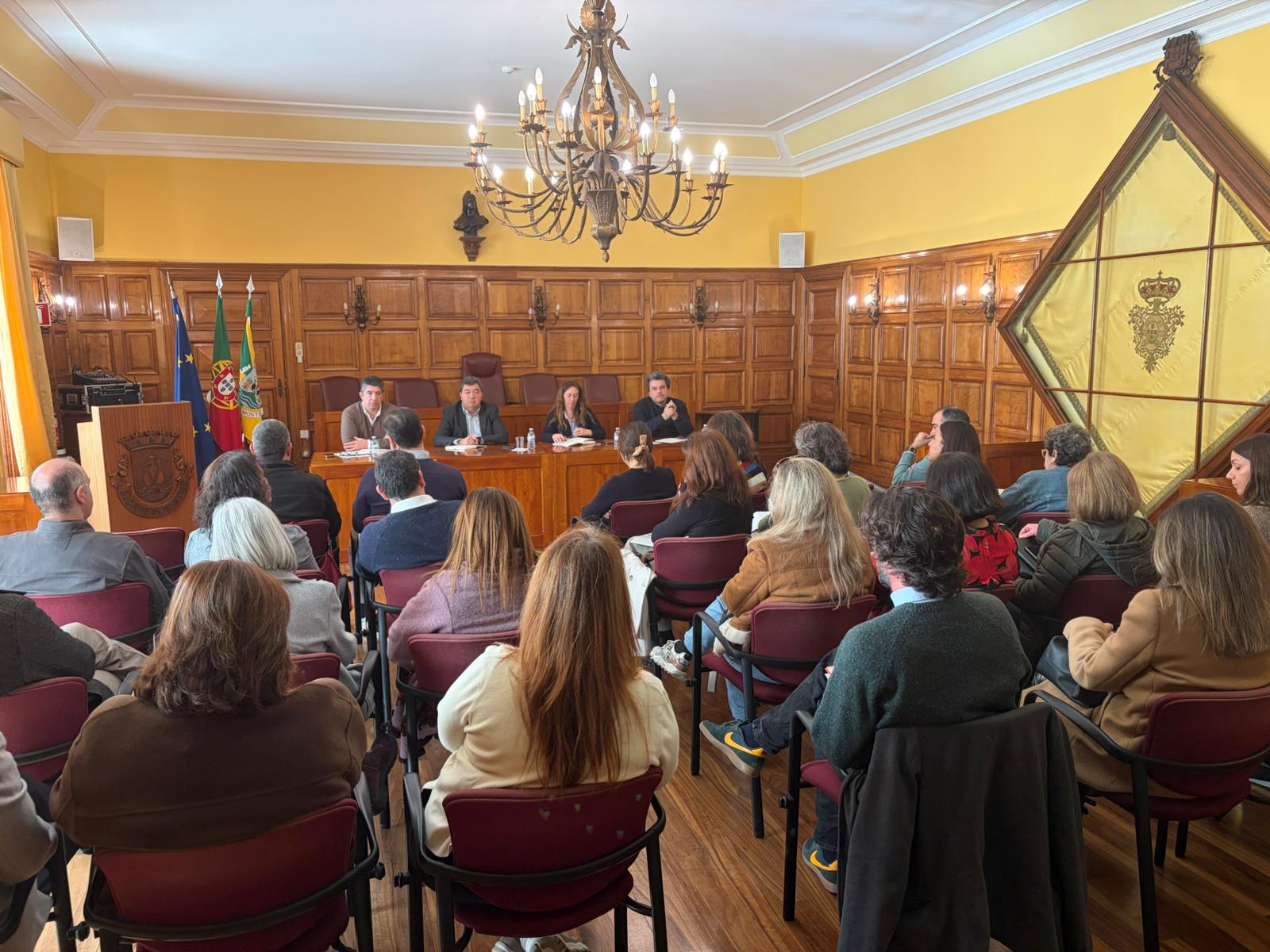 Realizou-se hoje, no Salão Nobre dos Paços do Concelho, uma reunião de dirigentes que reuniu o Executivo Municipal e os quadros dirigentes da Câmara Municipal do Montijo.