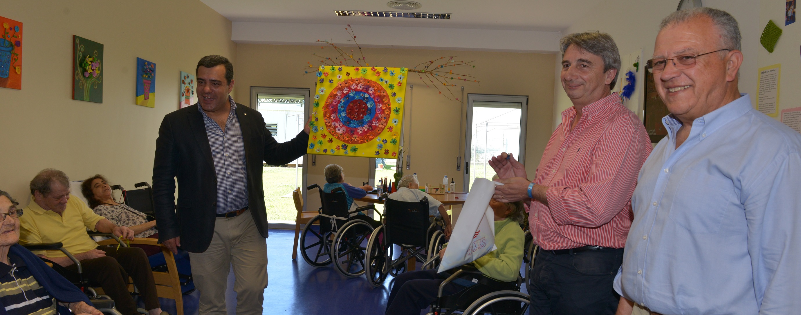 O presidente da Câmara Municipal do Montijo, Nuno Canta, o vice-presidente, Francisco dos Santos, o presidente da União de Freguesias do Montijo e Afonsoeiro, Fernando Caria e o presidente da Comissão de Festas, José Manuel Santos visitaram ontem, dia 20 de de Junho diversas Instituições Particulares de Solidariedade Social cujos utentes participaram na criação de flores de papel para as Festas de São Pedro.