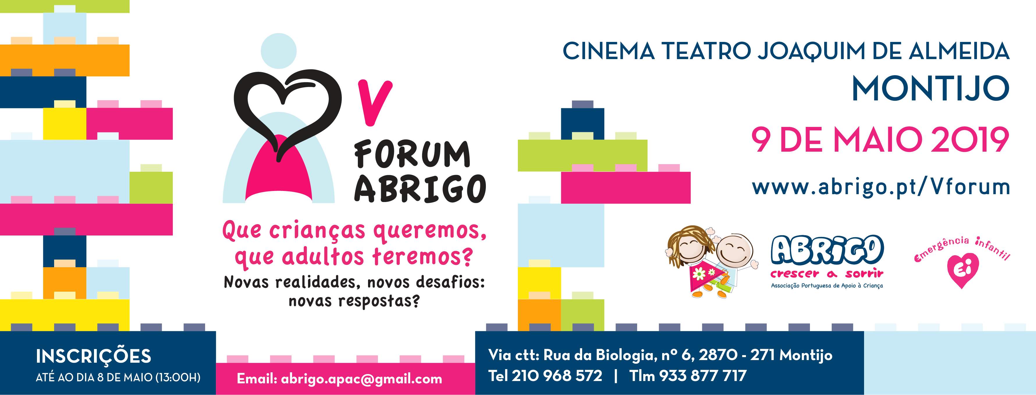 A Abrigo – Associação Portuguesa de Apoio à Criança realiza o V Forum Abrigo, no próximo dia 9 de maio, a partir das 9h30, no Cinema-Teatro Joaquim d’ Almeida, no Montijo.